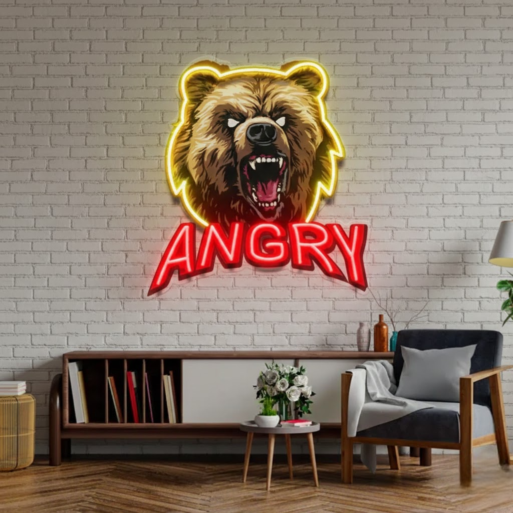 Angry Bear Custom Neon Sign Board | LED Neon Lights for Room, Shop & Name Signs (2.5ft x 2.5ft)