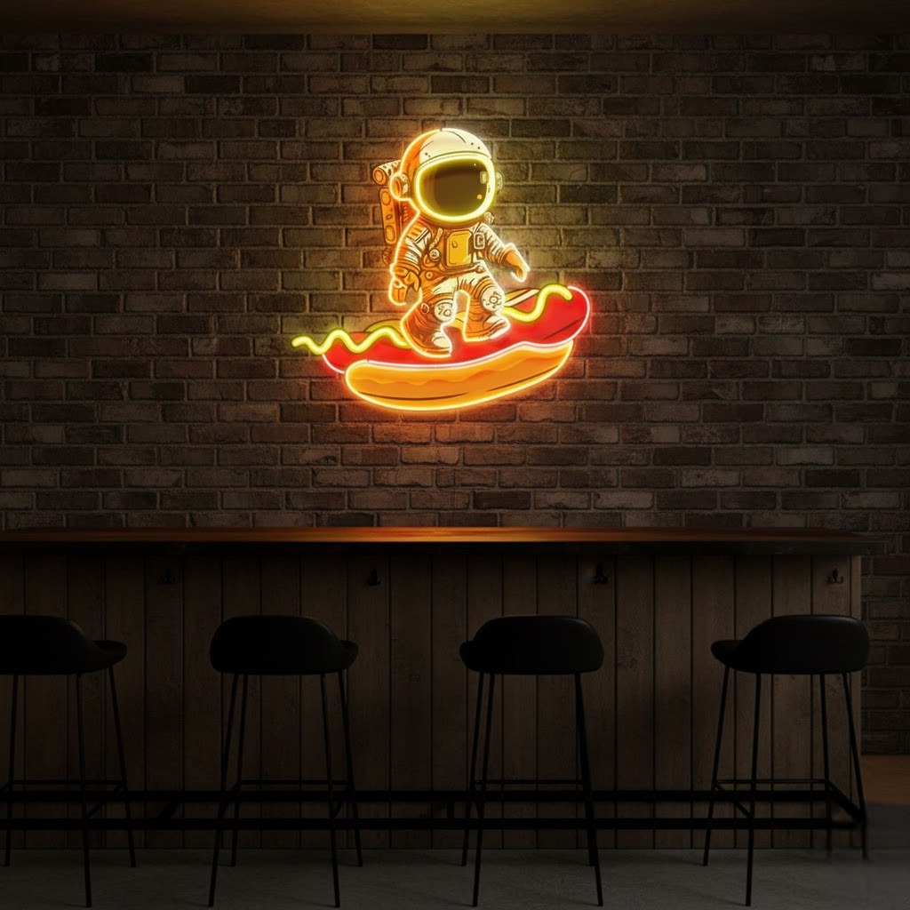 Astronaut on Hotdog Custom Made Neon Signs for Room, Bedroom & Shop Decor (2ft x 2ft)
