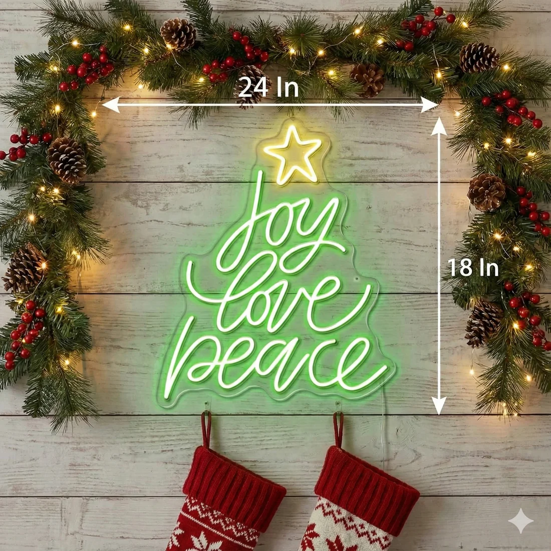 Be the first to review “Joy Love Peace Merry Christmas Neon Sign”